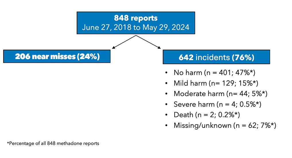 Methadone is an effective opioid agonist therapy (OAT) used to manage opioid use disorder. Data from the AIMS Program indicate that methadone is one of the top drugs involved in medication incidents and good catches. It is also the most frequently reported drug involved in severe harm or death.